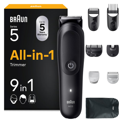 All-in-One Trimmer-Set 5, 9-in-1 Multigroom, Barttrimmer, Haarschneidemaschine designed for Gesicht, AIO5540, Schwarz